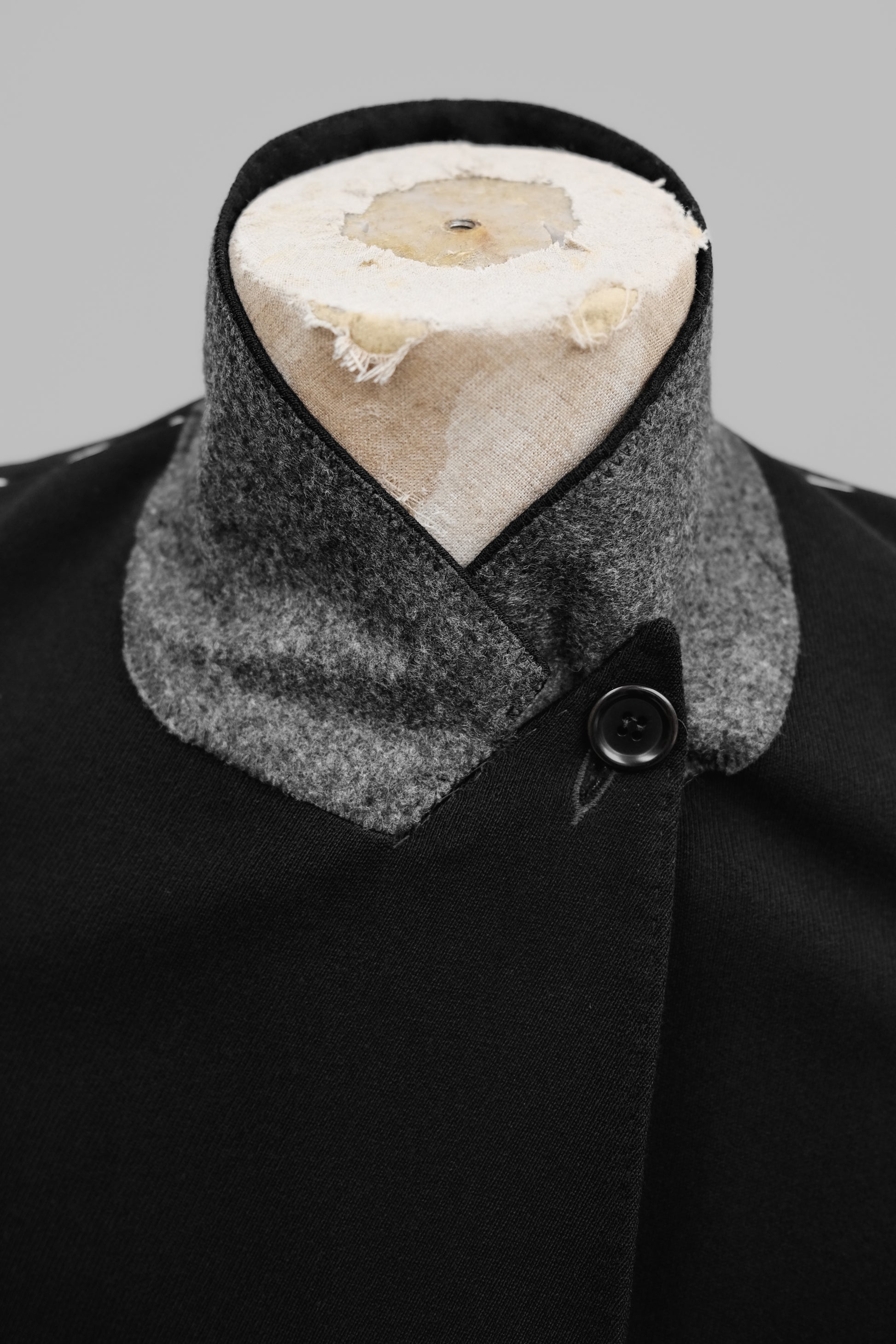 This piece is a re-edition of Martin Margiela’s iconic cigarette shoulder jacket, a design that first appeared in the Spring/Summer 1989 collection.