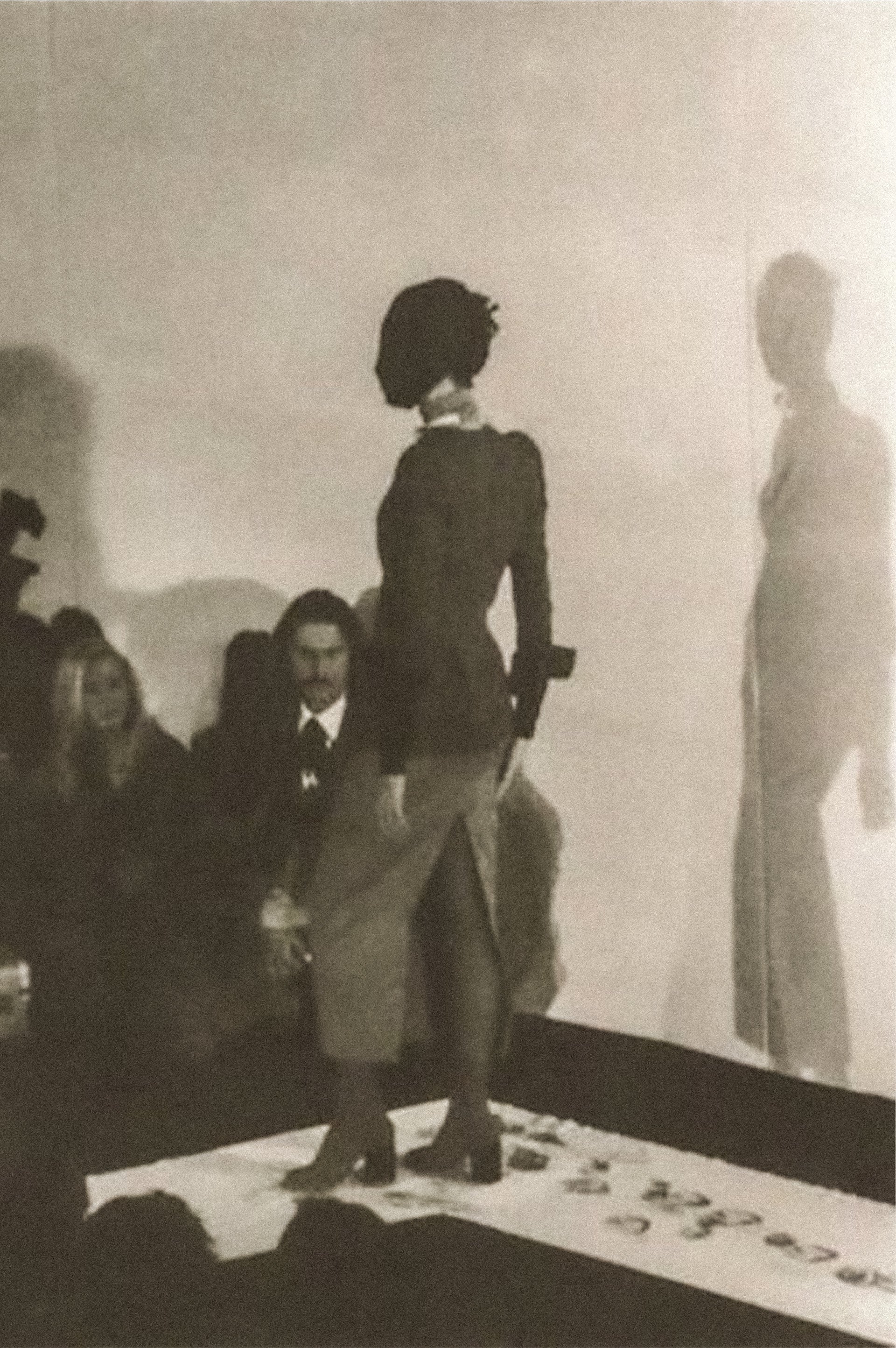 Narrow, straight shoulders—cigarette-like in shape—contrast with the exaggerated power shoulders of the 1980s, creating a slim, vertical silhouette.